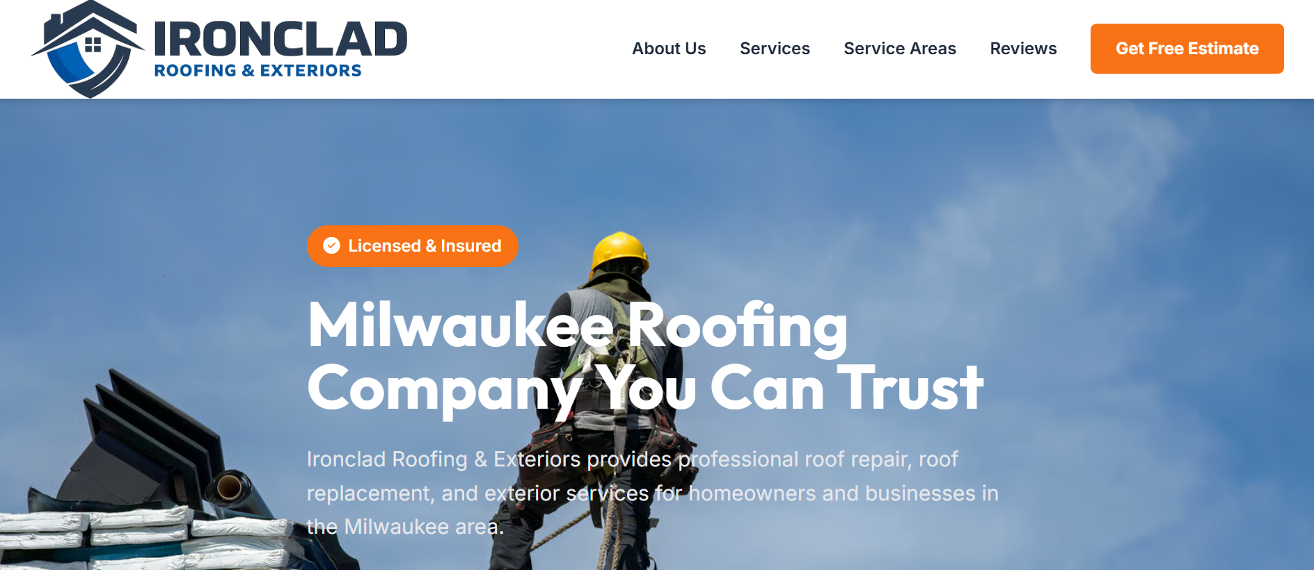 Simple, professional service website for residential roofing.
